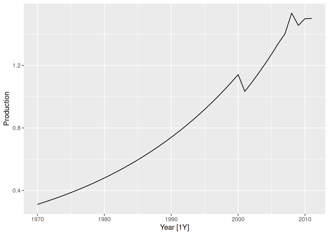 <- as_tsibble(guinea_rice, index = Year) guinea_rice